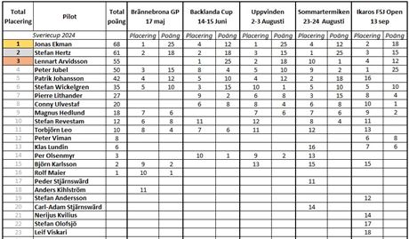 Som ni ser så är tävlingarna som ingår i Sverigcupen markerade med att kryss i rutan.